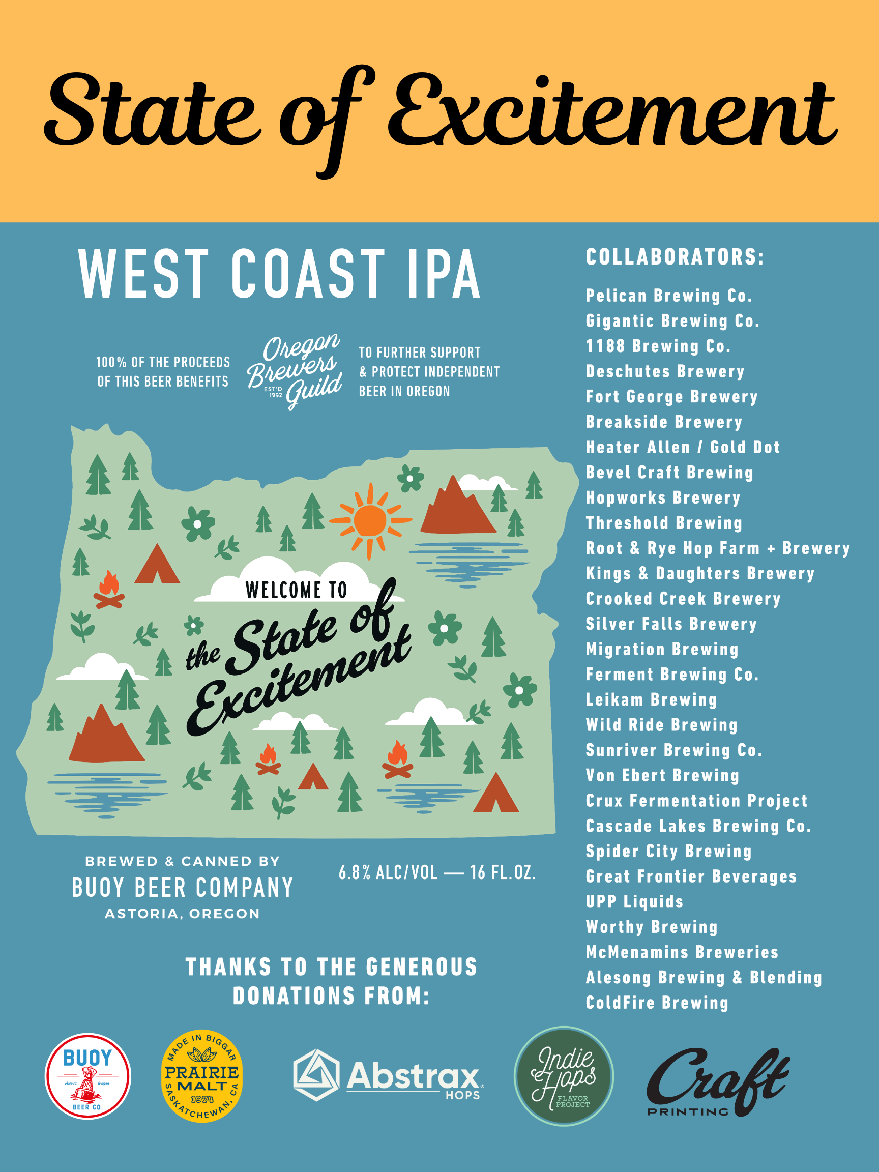 The Oregon Brewers Guild's State of Excitement is a statewide collaboration series that unites member breweries and industry partners to brew unique, limited-release beers several times a year —celebrating the creativity and community behind Oregon craft beer.
